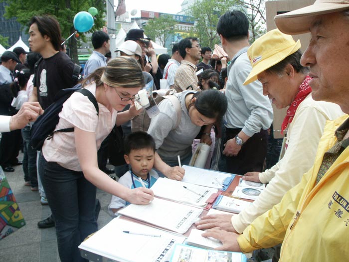 法轮功学员们表示,为了向各机构各国籍人员讲清真象,以后还将在各重要机构的前面架起同样的“真象墙”,让法轮大法真象传遍整个韩国的“曼哈顿街”。