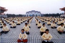![]() 万名台湾学员 总统府前炼功 | ![]() 台湾学员中正纪念堂集体炼功 |