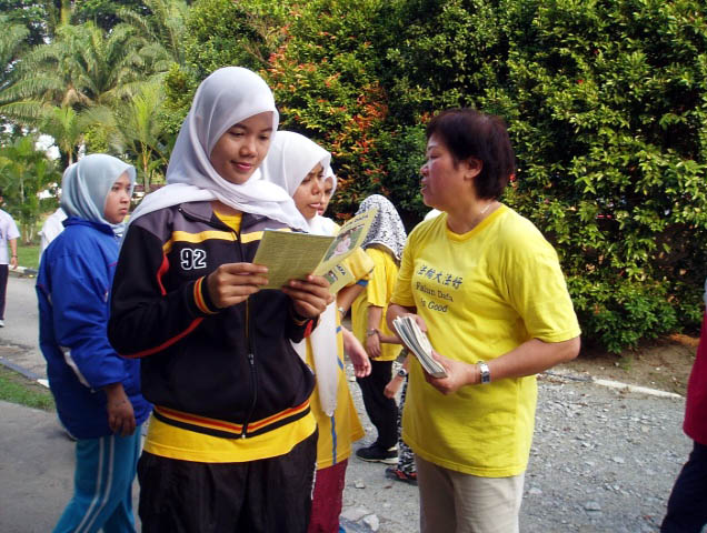 自从法轮功在中国被中共镇压以来,马来西亚法轮功学员为尽早停止这场惨无人道的迫害,在讲清真象中揭露中共迫害法轮功的残酷手段时,往往被受中共宣传误导的人们说是在反华。学员们讲清真象,援救目前面对生死攸关、长期受尽折磨的大陆法轮功学员,呼吁停止中共残酷迫害的举动被严重误解。迫害已延续将近六年了,可是仍有很多华人由于受中共谎言宣传的误导和欺骗,而忍心漠视这场毫无人道的迫害。今天学员们把中共镇压法轮功的残酷手段曝光于大众面前,谎言一一不攻自破。学员们也为越来越多的人们了解中共的谎言与卑鄙迫害手段后,义不容辞的站在正义一方而感到欣慰。