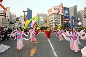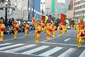 【明慧网2005年5月7日】日本福冈一年一度的文化节于2005年5月4日举行。今年大约有210万市民观看了本次文化节的各种表演。为了让日本民众了解法轮功的美好,100多名法轮功学员参加了此次盛大游行,受到沿途观众的热烈欢迎。