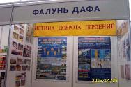 ![]() 法轮大法展位 | ![]() 索取真象资料和光盘 | ![]() 为观众演示5套功法 |