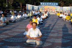 游行结束后,各游行团队来到市区旁的绿地,继续下一步的庆祝活动。各团队有各自的展位,绿地中心设有“舞台”供各团队表演或展示。法轮功学员们为其他游行队伍及观众展示了法轮大法的五套功法。功法表演结束时,场地四周响起了热烈的掌声。