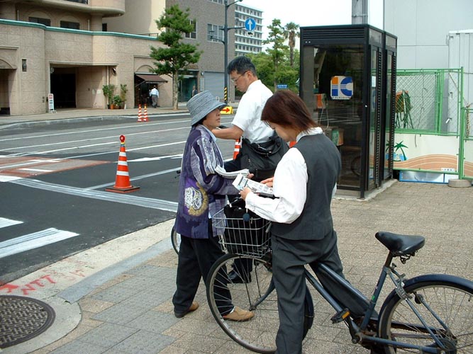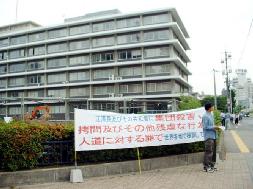 连日来,学员们在市役所、裁判所等门前以发传单、拉横幅、图片展等方式向人讲法轮功在中国无辜遭受迫害的真象,使政府职员、法律界人士及时了解到真象:江××及其帮凶践踏人权,对法轮功学员犯下滔天大罪,现在已被世界20多个国家及地区的法轮功学员起诉,天网恢恢,疏而不漏,行恶者终将被绳之以法。