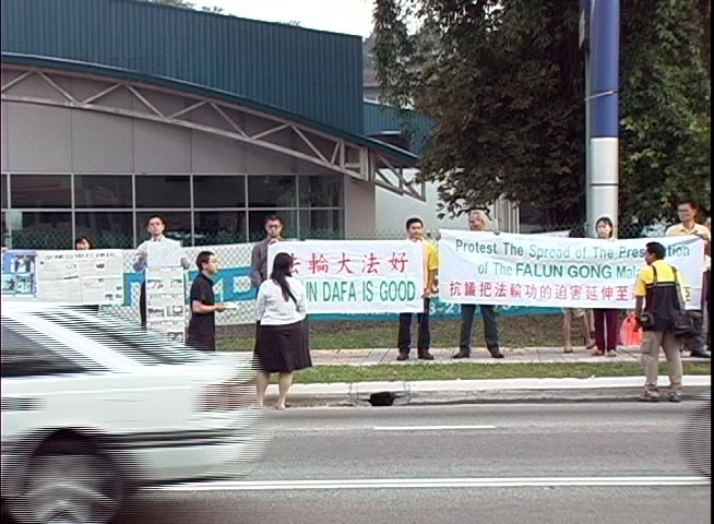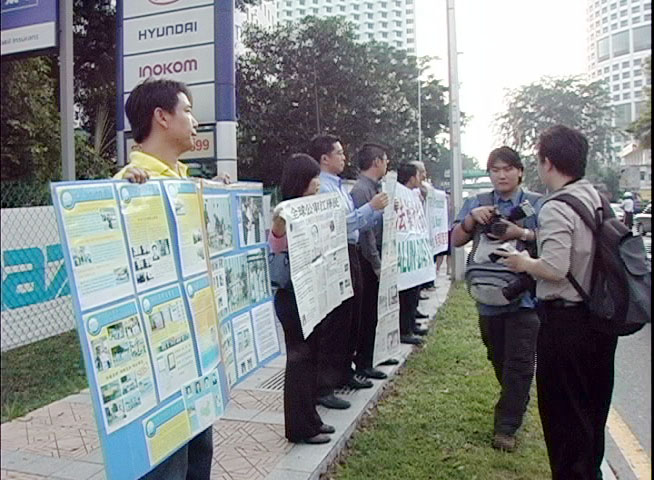 法轮功学员强烈抗议中共对马来西亚法轮功学员的迫害。迫害已经严重侵犯马国法轮功学员的言论、思想、信仰自由。此外学员也向公司注册局呼吁撤销对法轮大法研习中心理事的所有指控。