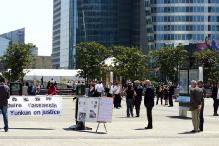 九日,部份法轮功学员在CNIT外的大型广场上举行和平抗议,揭露中共对法轮功的残酷迫害,要求法办王云坤。