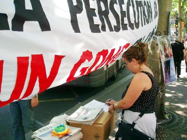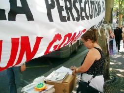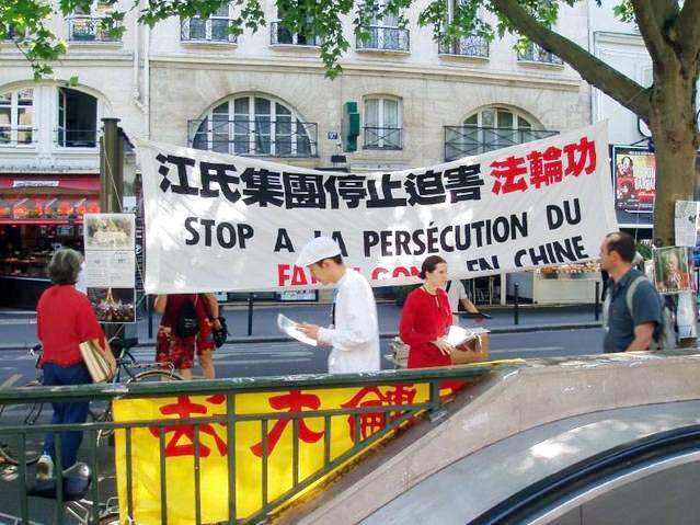 一个星期又一个星期,一个街区接着一个街区。这次,学员们把横幅挂在了拉丁区,这是一个人口混杂而拥挤的街区,游客、学生和购物者拥挤在一起。参加活动的学员的人数虽不多,可是横幅却很显眼,一下子就吸引了人们的注意,很多的人都停下来,看那些揭露迫害的照片。一些深受震惊的人们径直来到征签处为呼吁停止迫害签名,甚至不用学员们再为他们做更多的解释。