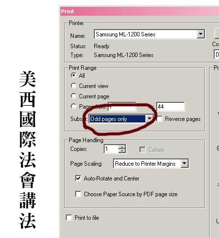 3. 打开骑马订版本(PDF)后,先印完奇数页(Odd Pages Only),如图四。