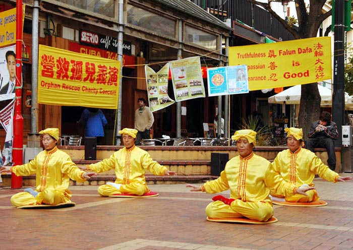 【明慧网2005年6月13日】2005年6月11日,新西兰法轮功学员在首都惠灵顿市中心古巴街举办义演营救在中国因中共