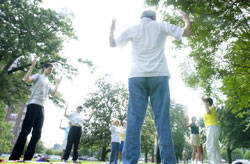 图:在门罗公园的炼功者在祥和的功法中获得内心的平静