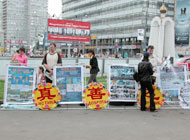 莫斯科阿尔巴特广场上展示法轮功真象(图)