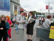 【明慧网2005年6月20日】2005年6月18日,莫斯科法轮大法学员在市中心阿尔巴特广场举行了讲真象活动,呼吁立即停止在中国对法轮功学员的残酷