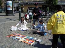 隆德是瑞典南部的一座小城,但历史悠久,素有“大学城”之誉。这是学员们第一次在此举办反酷刑展。活动刚开始不久,一位中国留学生走了过来,饶有兴致的观看展板并开始提问,一位学员耐心的向他讲着真象。像许多来自中国大陆的民众一样,他不知道六年以来,在中国发生着的迫害如此残酷。他问了许多问题,索取了各种真象资料、光盘,并留下了自己的地址,希望学员给他寄一张教功的光盘。临走前,他高兴的说:来此一年多了,听说在马尔默有炼法轮功的,去过几次,都没有找到。今天,能在这儿见到你们,真是太巧了! 原来,他与朋友原计划去野炊,后来听到天气预报说今天会有大雨,便取消了计划,他才得以到广场来。