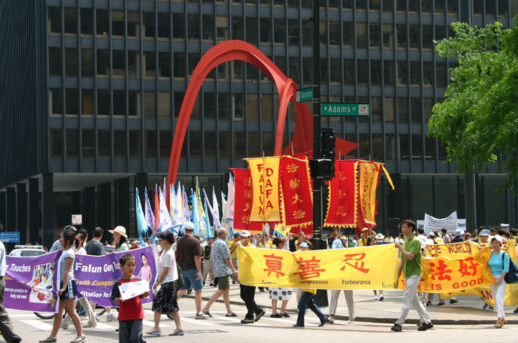 2005年6月25日,上千名法轮功学员再次云集芝加哥,举行了以“揭露迫害,正义必胜”为主题的大型活动,展现他们不可泯灭的信念。