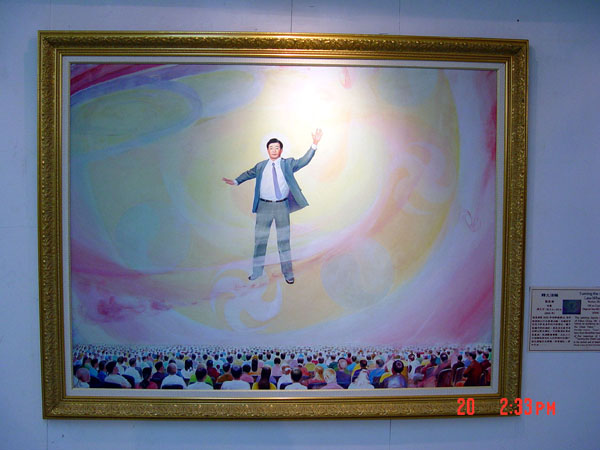 ![]() 与画作合影留念 | ![]() 一位学生说:这尊佛的眼睛会动,他的手在接引我们 | ![]() 法轮功师父 |