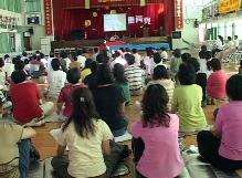 【明慧网2005年6月30日】台湾台南6月26日星期日于建兴国中举办台南区一日学法交流。当天约有300名法轮功学员参加这项活动。上午分成人组和儿童组进行小组学法交流,下午则是大组集体学法及心得交流。
