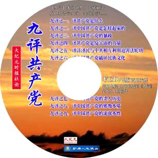 所以,我是按照只去掉中心那个小圆贴设计的,特意设计成这样,目地是为了最大程度的保持意境和画面完整,充分表现主题、吸引读者,使拿到光盘的人第一眼就能感受到《九评》的内涵展现及威力和将带来的美好,就是说,我的用意是通过光盘贴把(我感受到的)《九评》告诉世人,而不只是设计一些单纯图案美观的光盘封面。贴好封面的光盘是图1那样。
