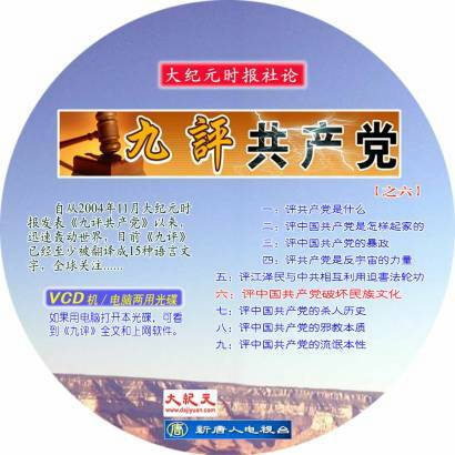 非常重要的一点,要注明这是“VCD机/电脑 两用光盘”或“DVD机/电脑 两用光盘”,后面加上必要的说明文字,说清楚用电脑打开能看到的内容,最好强调能看到《九评》全文和上网软件。注意不能用专业的计算机术语,要使更多人看懂,明白“用电脑打开能看到更多的好东西”。