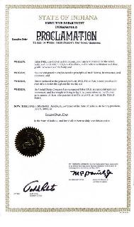 因此,现在,我,印第安纳州(Indiana)州长米切尔•丹尼尔斯(Mitchell E. Daniels, Jr.)特此宣布2005年6月9日为印第安纳州