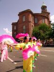 法兰克福的标志性建筑物保尔教堂前的中国传统舞蹈