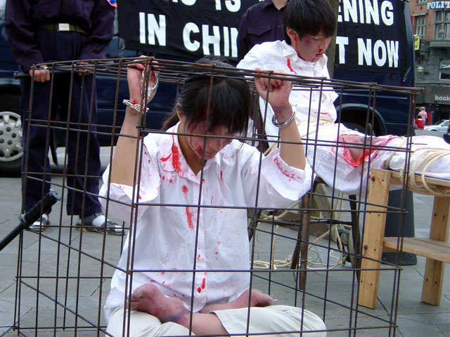 这次的反酷刑展,在法轮功学员们真人演示酷刑的同时,还展出了大量内容丰富的图片,从法轮功是什么,到发生在中国的迫害,到迫害在海外的延伸。六年的残酷迫害,到7月15日止,明慧网上公布的遭迫害致死的学员人数已达2684人,实际死亡人数应高达数倍于此。在法轮功学员六年不停息的呼吁和讲真象中,这场迫害已渐为世界所瞩目,反迫害、反暴力的声音在逐渐响亮。