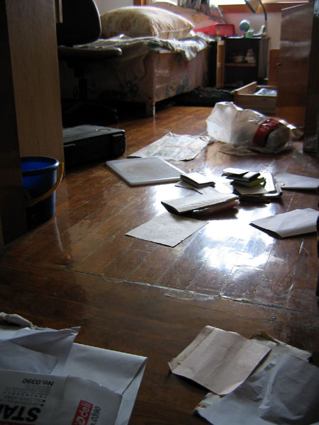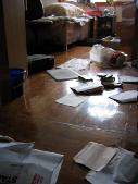 6月30日,孙东霞外地上大学的女儿放假回家,发现家里被翻的一片狼藉(见图),还有大量的烟头及快餐盒,并据邻居反映,孙东霞及丈夫被绑架几天后,家里的阳台上却晾出了被子。与此同时,有人往孙东霞家里打电话,电话占线,一会再打,却无人接听。恶警非法占据孙东霞的住所。目前家中财产有没有丢失还无法查证。