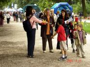 虽然公园里有各式各样的主题活动,但人们对法轮功表现出尤为浓厚的兴趣,学员开始炼功不久周围立即围满了人,发传单的学员一边发一边回答围观人群的提问,许多人静静的等着学员一路发资料到自己跟前方才离开,有些甚至自己走到正在和别人交谈来不及发资料的学员跟前索取真象材料,更多的人看着传单和炼功的学员久久不愿离去。有三个带着孩子的年轻父母主动要求当场学功,还有部份游人详细询问了所在城市的学法教功地址及联系人。