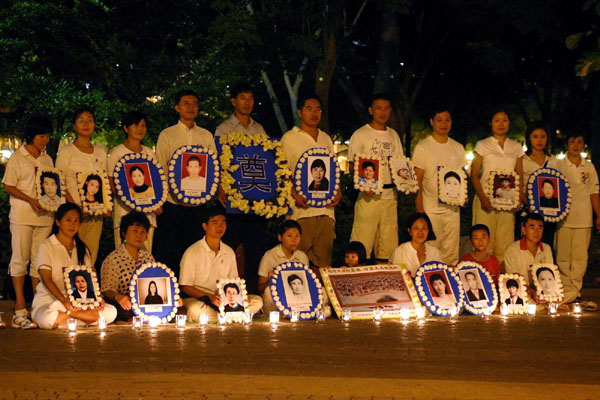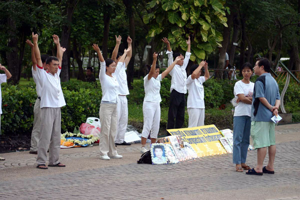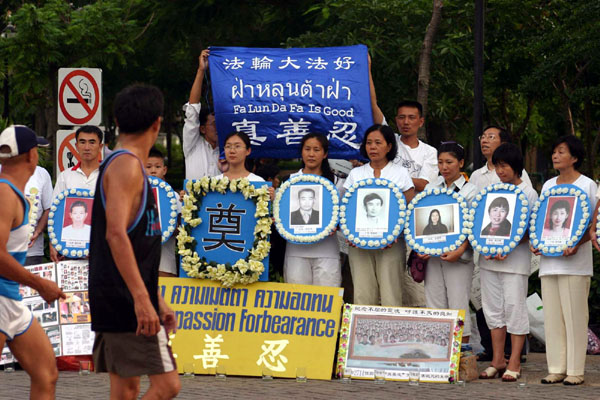 【明慧网2005年7月26日】7月22日,泰国曼谷的法轮功学员在公园举行烛光守夜,悼念在中国被迫害致死的法轮功学员,并抗议中共六年来对信仰“真、善、忍”的法轮功学员犯下的群体灭绝罪行。