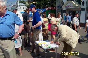 一群小学生来到这里,他们认真听学员讲真象之后,每个人都签上自己的名字,支持反迫害。签完字孩子们又来到真象展板前,一边读着说明一边看着照片,一个个脸上显出严肃和凝重的表情,看得出他们善良幼小的心灵也被深深震撼了。今天,明白了真象的人们都纷纷签名支持反迫害。