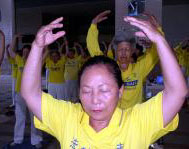 2005年7月20日,台湾屏东法轮功学员聚集在屏东县立体育馆前,以烛光静坐的方式,悼念6年多来被迫害致死的2719名法轮功学员。从下午5点开始,屏东法轮功学员以祥和的炼功展示法轮大法的美好;晚间7点,学员们点亮烛台,为坚持真理、不畏生死的中国法轮功学员静坐请愿。现场学员并清唱起“请与我比邻而坐”:“请与我比邻而坐,在寂静之处。微闭双目,发出我们心底的呼唤。为制止酷刑凌辱,为结束疯狂屠戮。为停止一切迫害,心慈意猛何惧苦。于无声处,让我们同将历史改变。于无声处,让我们同将众生救度。同将众生救度。”