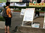 象这样为世博会而来却了解了法轮功真象的,还大有人在。在下午活动将要结束、法轮功学员们正在开始收拾图片展板时,有5~6位身穿红色T恤衫的西人站在了公园旁边。学员拿着英文资料走了过去,并问他们是否知道法轮功。其中一位肤色较黑的先生说他知道很多,在美国曾看过有关的资料,而另外的几位白人则不知道。于是这位学员用英文向他们介绍了法轮功、在中国大陆已持续了6年的这场迫害的真象,以及自己在去中国出差时,只是因为告诉了中国人法轮功的真象就被中共强制遣返回日本的亲身经历。这几位西方人听后都有些惊讶,没想到现在中国大陆还在发生着这样严重的侵犯人权的事情。