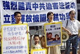 据香港电台网上广播站(RTHK)7月27日报导,大约有60名香港人士在香港中联办请愿,要求释放香港记者在大陆被抓的家属。为新唐人电视台工作的梁珍说,她的母亲和哥哥在四川省泸州市被捕,她告诉记者Clara Mack说,他们的被捕是因为她在新唐人电视台工作。