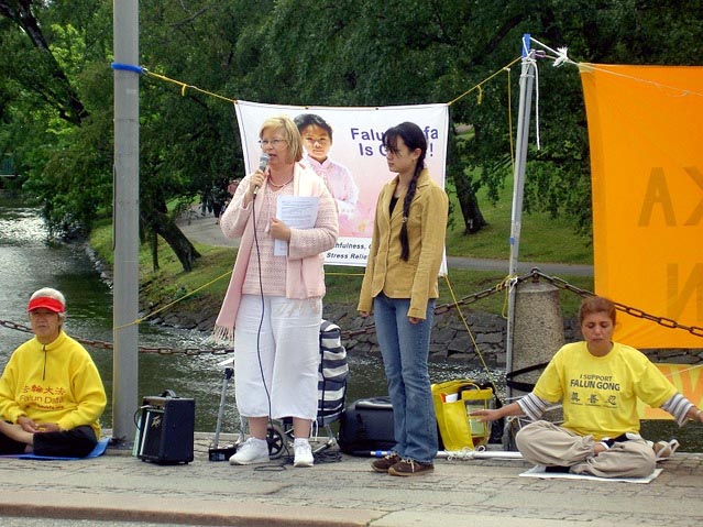 在这次集会中,法轮功学员演示了五套功法,发正念,发真象传单给路人,并征集终止迫害的请愿签名。
