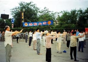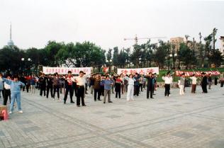 图片:98年大法弟子在辽宁凌源市政府门前集体炼功