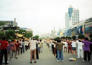 图片:99年前,长春大法弟子在文化广场集体炼功