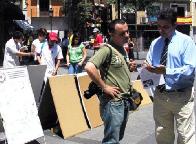 一位男士第一次经过反酷刑展,接传单时仅瞟了一眼便脱口而出:“噢——法轮功?×教。”他不等学员说话,就头也不回的走了。但没过多久,学员再次看到这位男士,他站在揭露酷刑的图板前正聚精会神的读展板上的文字说明。之后,他停在真人演示酷刑前,长时间伫立观看,神色凝重。学员看到他的变化,知道他已经明白了真象,就没再说什么,忙着发传单去了。学员第三次看到这位男士时,他正在向学员走来,他对学员说:“我是特意来告诉你,我已经签了字。”