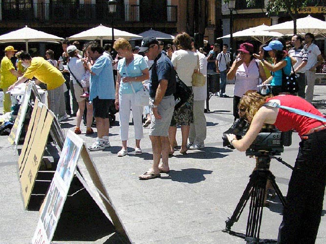 在国际反酷刑日期间,西班牙法轮功学员们再次来到这座古城。这已经是他们第六次来到这里洪法讲真象以及办图片展。但举办真人演示的反酷刑展在这里还是第一次。