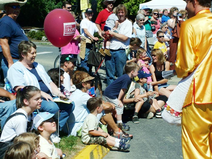 傍晚,学员们驱车回到西雅图北部,参加了另一个小城游行-海洋节湖城市社区游行(Seafair Lake City Parade)。这是学员们第5年参加该游行。主席台前,主持人介绍了法轮功后说: 谢谢你们来! 谢谢! 观众席中,有人鼓掌,有人竖起大拇指。游行结束后,一位中年妇女路过学员们的花车,兴奋的说:你们的队伍太美了,太美了!