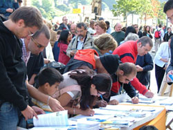 游人中还有不少来自大陆的中国学生,他们有的默默的观看了演出和展板,由于内心深处被中共长期制造的恐怖气氛影响而形成的“恐惧”,他们一般不敢签名,但留下同情和“我明白了”的目光。