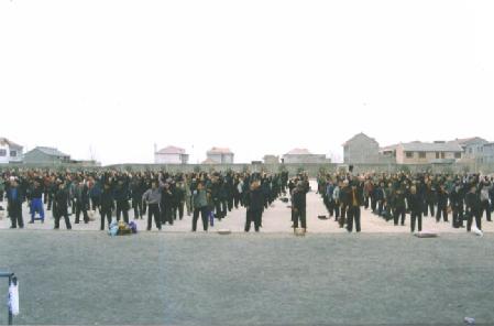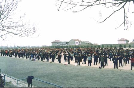【明慧网2005年8月15日】1999年3月山西省运城地区大法弟子在市高等专科学校体育场的一次炼功。