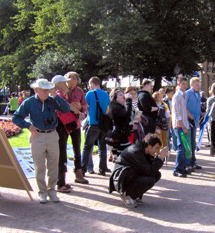 两位瑞典人问法轮功学员为什么在这里,这些(指被迫害致死的学员遗像)都是中国人吗?当得知原因并知道这些学员们来自几个不同国家时,他们说,你们做得很好。他们还说,西方社会的政府对迫害不作出反应,是因为经济利益问题,这是不对的。
