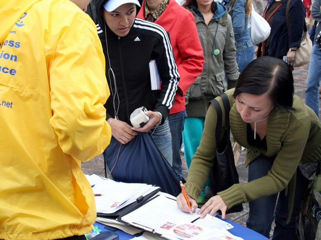 学员们耐心的一遍又一遍回答着人们的问题,讲述着法轮大法弟子在中国遭受中共迫害的始因,揭露中共恶党反人类的本质,唤起着人们的正义良知。