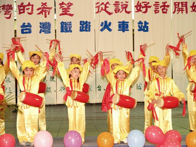 腰鼓练习的时段,由小朋友们互相教学相长,会的教不会的,在练习的过程中,小朋友把自己当修炼人要求,体会到无私及奉献的可贵。腰鼓队成立近两个月,暑假期间,小朋友也有多场的表演机会。其中有许多感人的小故事。