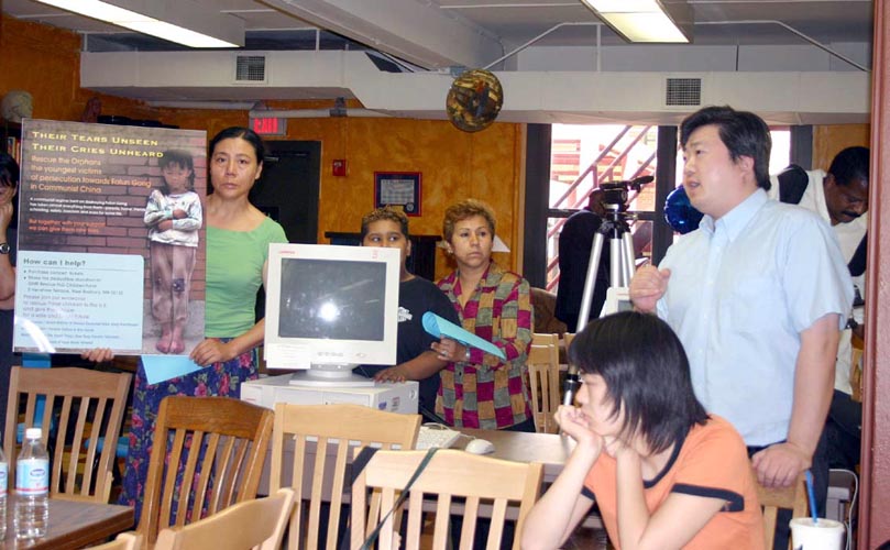潘先生说:”在中国,中共迫害法轮功,使法轮功学员的家庭遭到不幸,由于法轮功学员被抓,被迫害,被迫害致死的法轮功学员有2784位,他们的孩子成为孤儿。这些儿童在国内不但未受到帮助,反而受到很大的压力。美国以自由为立国之本。我们小组利用这次胡锦涛来美国参加活动、与国家总统布什会谈的机会,通过“营救孤儿”的活动,让更广大民众了解中共迫害法轮功的真象,大家共同来制止迫害,营救遭到不幸的儿童,让法轮功学员的遗孤到美国能有自由的生活。”