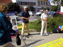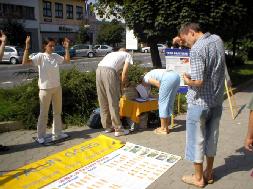 【明慧网2005年8月23日】8月20日星期六,法轮功学员来到斯洛伐克西部的莫拉斯市(Zlate Moravce),告诉那里的人们法轮功真象。一位在呼吁制止迫害的签名簿上签字的男士表示,希望他的签名能帮助制止迫害。