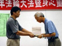 新埤国小高老师:在七、八年前就已看过《转法轮》,当时体悟不深,大概有一半以上的内容看不懂。最近因缘际会又重看了一次,居然看明白了,也自己开始炼功,但一直处于独修状态。这次参加了研习后,决定要出来和大家一起炼功学法了。