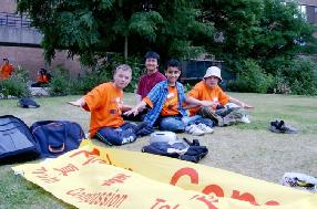 看着他们一个个年轻朝气的面孔,我不由得想起了国内的一些与他们同龄的孩子,在中共一言堂媒体的造谣宣传之下,被剥夺了解事实的权利,被欺世谎言所欺骗,毫无理性的仇视法轮功,难以想象那样的大陆孩子的将来会如何!