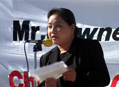 代表法轮功学员的起诉人之一章翠英女士发言说: 今天我面对法庭,是因为我相信澳洲的司法机构是公正的。澳洲是一个民主国家,澳洲人民有权利维护人权、良知和正义。和(中共统治下的)中国完全不一样。