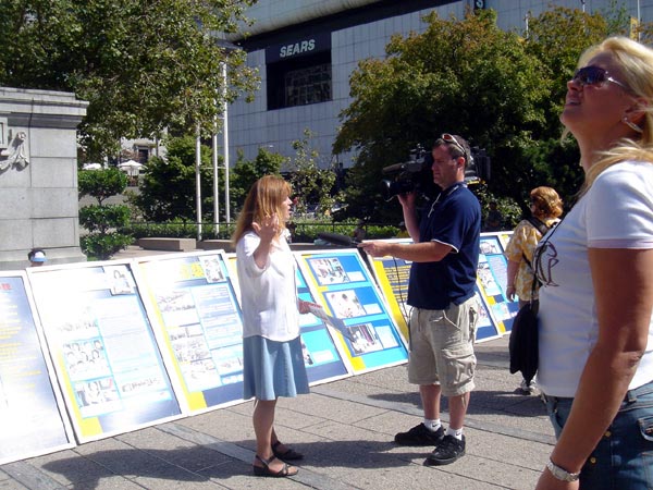 一位来自巴西的老师看到反酷刑展示后郑重的说,“这太令人难过了。我要帮助你们。”她说她要把今天拍到的照片给巴西的大使馆看,她还将告诉她的学生发生在中国的迫害。她说“媒体应该报导这事,让所有的人都知道。”她说她正好有朋友在媒体工作。