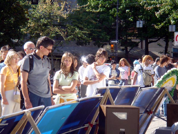 8月27、28日,温哥华法轮功学员再次在市中心艺术馆前举行反酷刑展,以真人模拟的方式向人们展示中国法轮功学员在中共暴政下,六年来所遭受的折磨,使加拿大人对迫害有一个感性的认识。