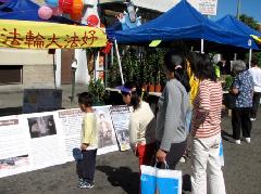 奥克兰是位于旧金山以东的一个大城市。据主办者统计,每年的街会都有至少20万人次参加,是北加州最大的街会之一。为了揭露中共对法轮功的残酷迫害,也让人们了解法轮功是一门很好的气功修炼,自2000年开始,法轮功学员每年都有在街会中摆放摊位;今年也不例外。很多人都表示听说过法轮功;也有的对现在还有这么严重的迫害发生而表示震惊;也有的表示想学功法。